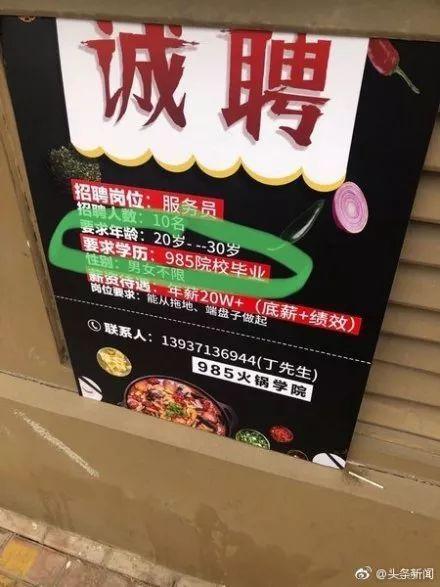 火锅店招服务员只要985毕业生,年薪20万+