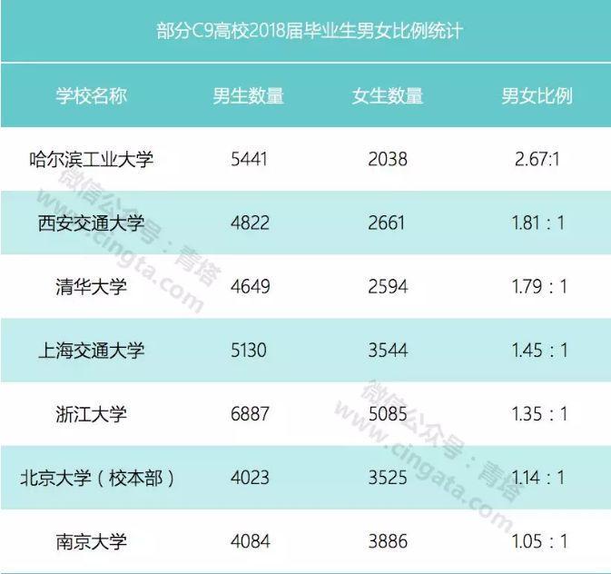 从7所C9高校的就业质量报告来看,2018届毕业生最多的学校是浙江大学(11972人),其余几所高校2018届毕业生人数分别是北京大学9603人(含医学部),上海交通大学8674人(不含港澳台及留学生),哈尔滨工业大学7479 人,南京大学7970人,西安交通大学7483人,清华大学7243人(不含港澳台及留学生)。除哈尔滨工业大学和南京大学外,其他高校2018届毕业生相比2017届毕业生人数有所增加。