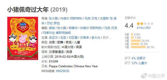 据中国之声《新闻纵横》报道:春节前,一部名为《啥是佩奇》的电影宣传片,在网络上一夜刷屏,好评如潮,也催生了“啥是佩奇?”这个2019年首个流行语。但凭借该预告片走红网络的电影《小猪佩奇过大年》正式上映后,口碑却不尽如人意,截至7日,它的豆瓣评分仅4.4分,票房表现在春节档里也只能排在中下游,有网友甚至吐槽它是“欺骗感情的圈钱之作”。