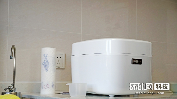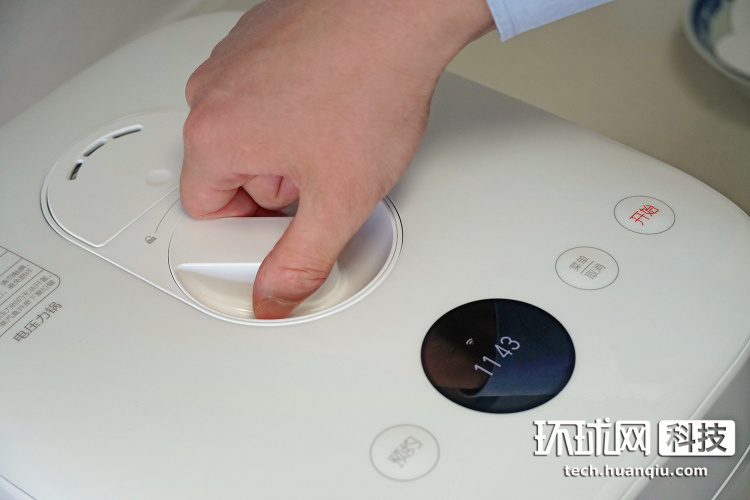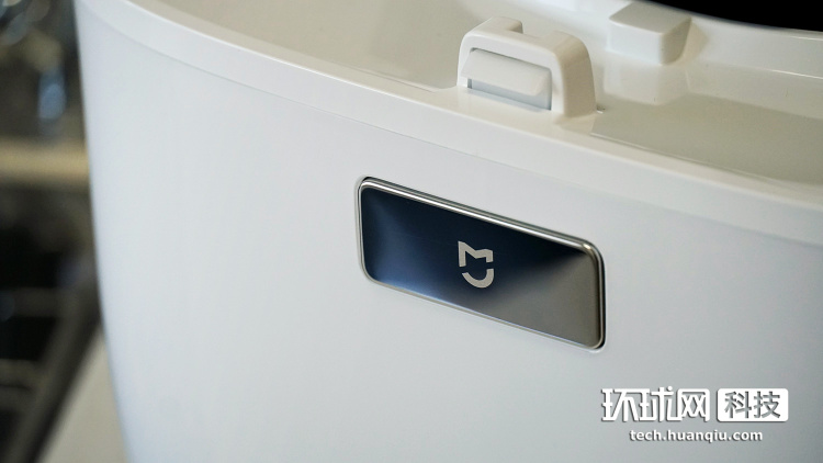 旋转解锁之后,按压这个带有米家logo、最显眼的开盖键,就能打开电饭煲。