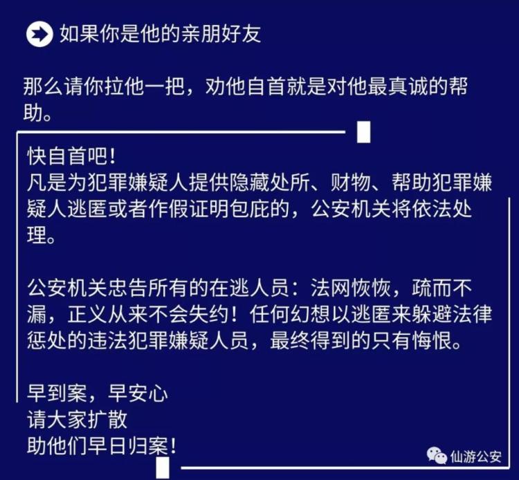姓名:肖建任,性别:男,出生日期:1988年10月15日,家庭住地:仙游县鲤城街道东门社区双桥94-1号。案由:因涉嫌开设赌场案于2018年01月04日被仙游县公安局网上追逃。