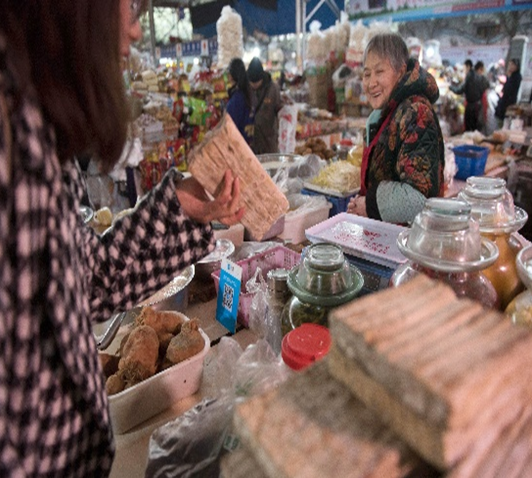 我特别喜欢宜宾这里历史比较悠久的老菜场,大家的气氛和热情是我们美国沃尔玛里没有的,豆腐阿姨的笑容也很美。