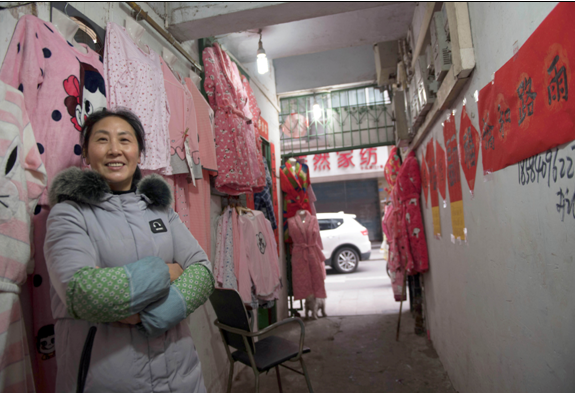 虽然年纪不轻了,但是满阿姨还是给我一个新年灿烂的笑脸。二十年前她是商店门市员,下岗后为了补贴生活,开了这家小睡衣店,还坚持用卖睡衣的钱支持自己的书法爱好。对于即将过去的2018年,她也写了一副对联: