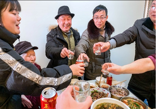 杨老师说年夜饭又叫团圆饭,看到他们一家人欢欢喜喜聚在一起我也很感动,感觉跟我在美国和自己的家人过圣诞和跨年很像。就是在这里吃的更辣、喝的更辣!我要乖乖地入乡随俗了——虽然喝两杯就已经开始头晕了。是的!你们随意,我干了!