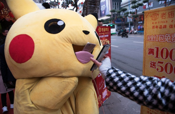 今年是猪年,我知道春节前小猪佩奇又火了,可是我还是喜欢这个比卡丘。过年也不休息,伸着舌头等我们扫二维码,请我们关注他们的新年生意,我送你一个“敬业福”!虽然我不知道在比卡丘里藏着的,是他还是她,都祝她(他)新年恭喜发财!