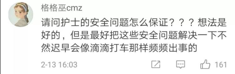 但是随后,这种服务也引发了社会争议——网约护士是否安全?收费是否合理?会不会抢夺公共医疗资源?这种服务会不会像很多共享经济一样只是昙花一现?