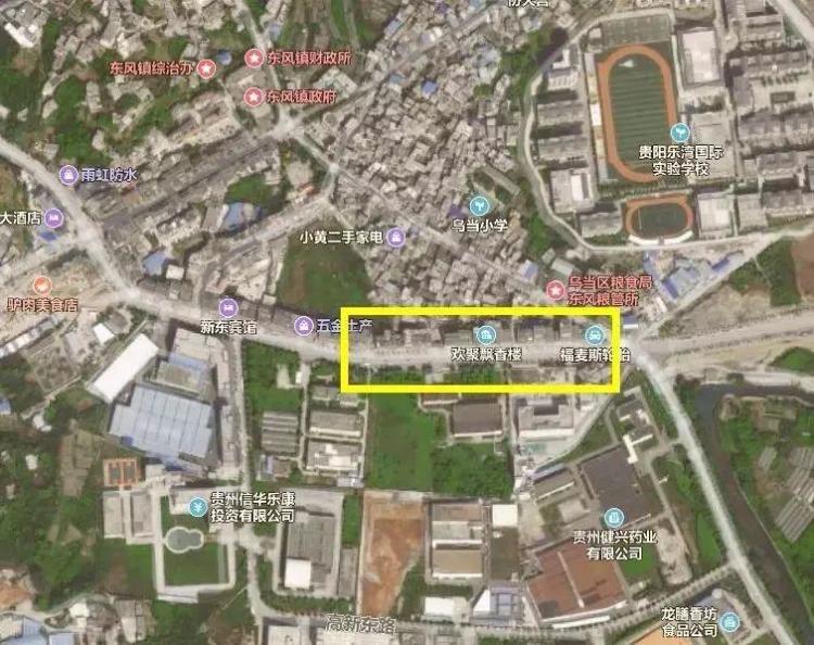东风镇站位于东风镇范围,距离东风镇镇政府约 410m。车站共设 3 个出入口,其中 1、2 号出入口均位于东风大道南侧,1 号出入口位于交叉口东南象限永乐药业附近,无障碍电梯与其结合设置;2 号出入口位于交叉口西南象限贵州广奕医药销售有限公司附近;3 号出入口位于交叉口西北象限,现状为沿街低层商铺。