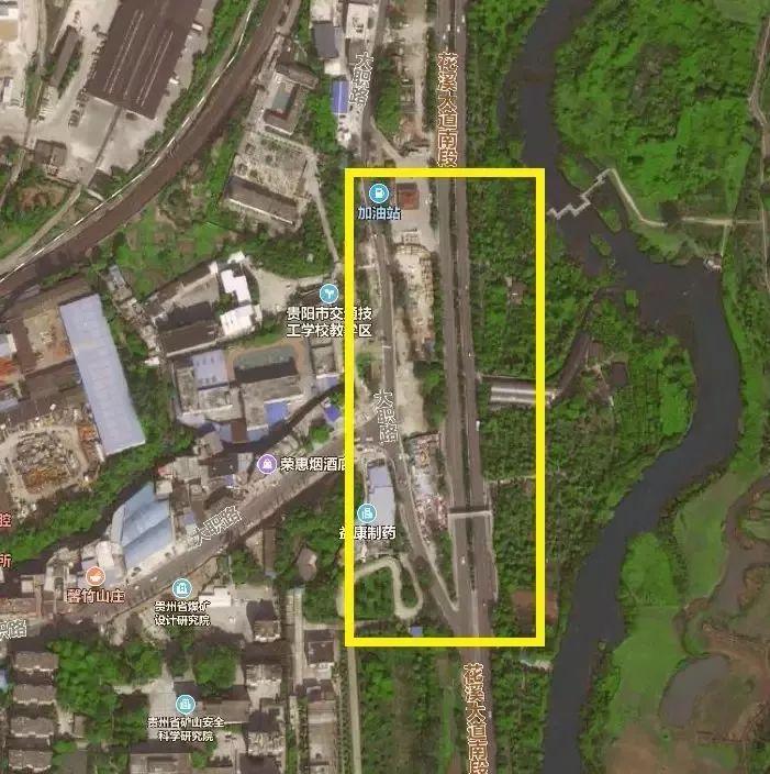 董家堰站位于花溪大道与规划金戈路南侧。车站共设 3 个出入口,1 号出入口设置在花溪大道东侧花溪湿地公园内避开一级水源保护线,2 号出入口沿大职路设于规划绿岛内,无障碍电梯与其结合设置;3 号出入口沿大职路设于贵州益康制药厂处。