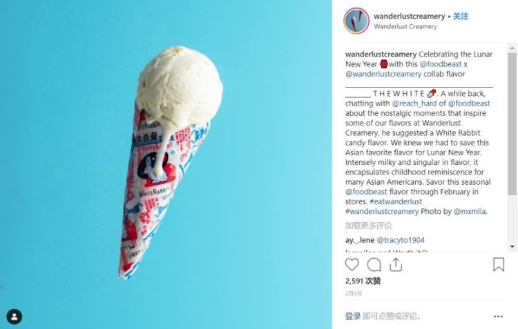 今年2月1日(农历腊月二十七),洛杉矶一家冰淇淋店为庆贺农历新年,推出了一款“大白兔奶糖”口味的冰淇淋。