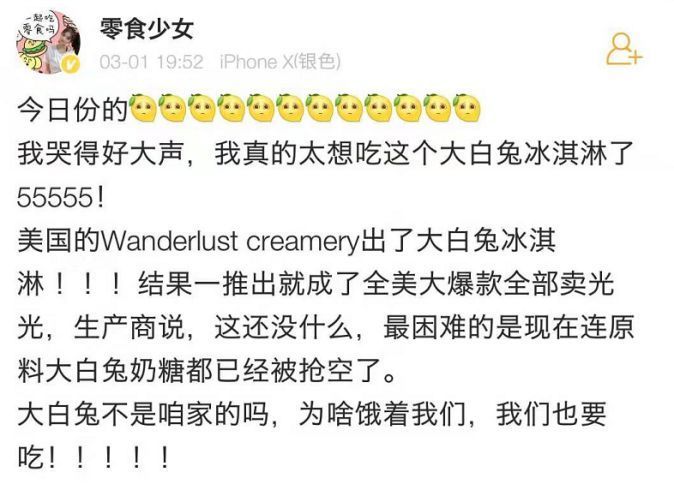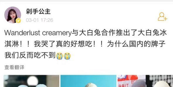 这款冰淇淋火了之后,有不知情的国内网友“责怪”大白兔奶糖没有在国内推出这款甜筒。