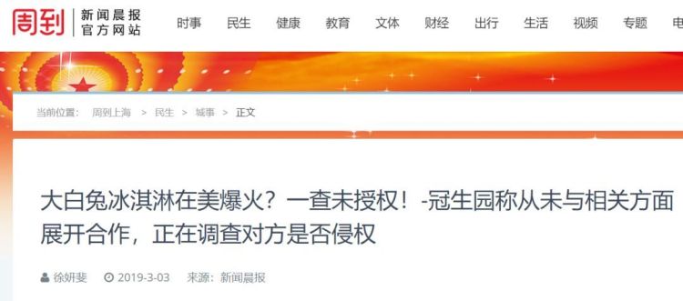 首先,作为冠生园食品,大白兔官方目前并无与任何美国商家开展过沟通,因此并没进行过关于大白兔冰激凌的官方授权。