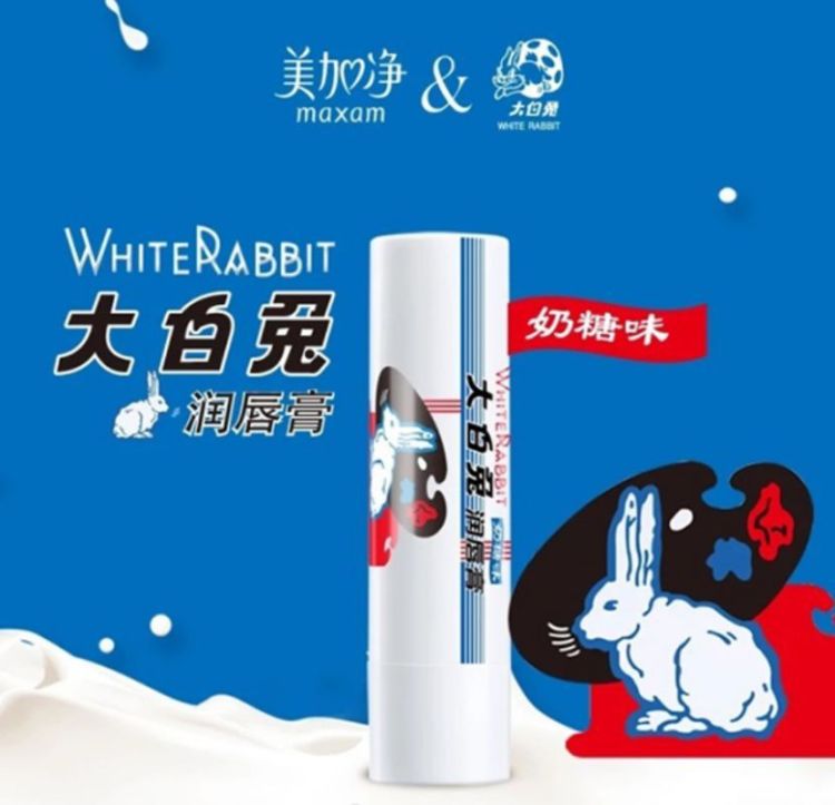 2018年9月,上海冠生园食品宣布,“59岁”的大白兔奶糖将和“56岁”的美加净跨界合作,推出联名款——美加净牌大白兔奶糖味润唇膏。