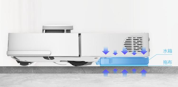 360扫地机器人S7的拖布采用后挂附压模式,能更有效的贴合地面,拖布紧密贴合水箱,拖地过程中不会发生拖布边缘卷边等问题,拖得更干净。