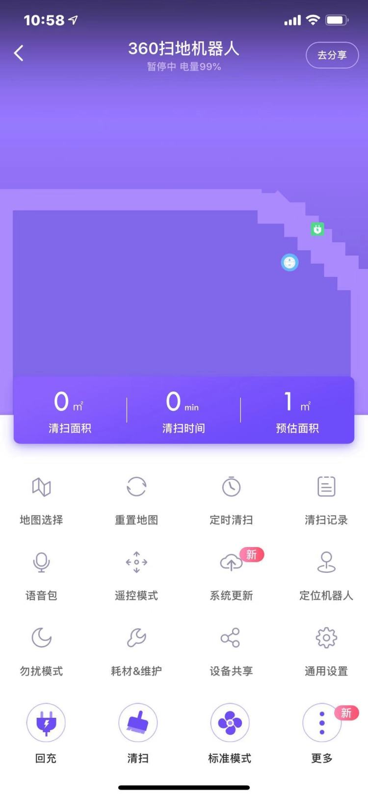 360扫地机器人S7还可以实时记忆自己的清扫进度,即使因为缺电而自动回充,也能在满电后继续未完成的清扫任务。
