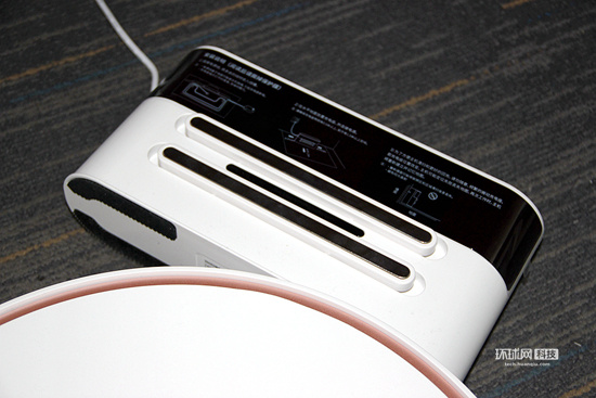 打开包装,我们可以看到360扫地机器人S7的装箱清单为主机*1、充电座*1、水箱*1、拖布*1、说明书*1、除尘刷*1、电源适配器*1。我们再来看看360扫地机器人S7的外观。S7的主体为白色,配合香槟金色的点缀,整体看起来很简洁。其机身尺寸为350*350*100mm,重量为3.68kg。另外,其充电座的外观尺寸为255*130*67mm。