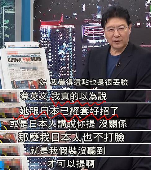 “很丢脸!”台湾政论节目主持人赵少康本还天真的以为蔡英文是“跟日本已经套好招了”,才会如此大胆的提出来,没想到却被对方结结实实打了一巴掌……