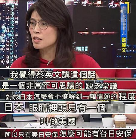 前“行政院”发言人郑丽文则痛批蔡英文“怎么会对日本不了解到一厢情愿的这种程度”,更直言:在日本眼中,它只能看得到美国!