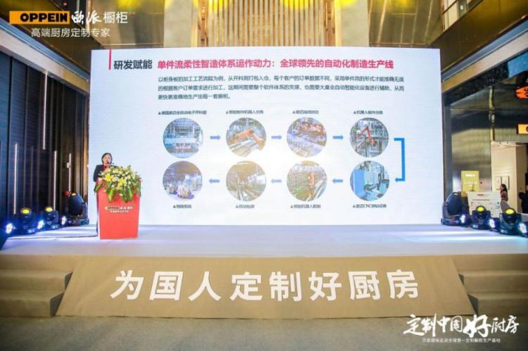 据欧派制造线相关人士介绍,为了实现智能化及个性化生产,欧派橱柜借助IT赋能,通过构建C2M全业务体系,打造了工业4.0全流程信息化体系,实现了研发、销售、制造、物流等环节信息互通,以达到高效生产、满足消费者一站式、个性化定制需求的目标。