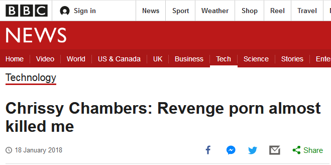 Chrissy Chambers: Revenge porn almost killed me (via BBC)