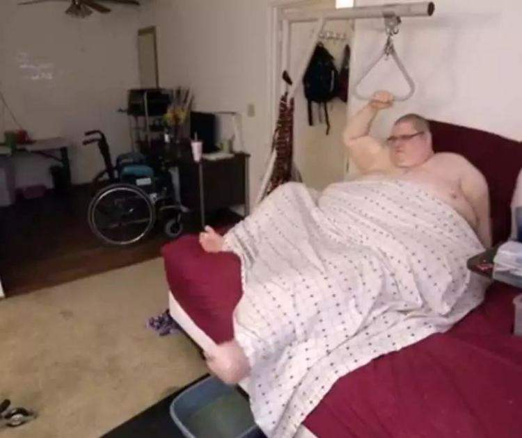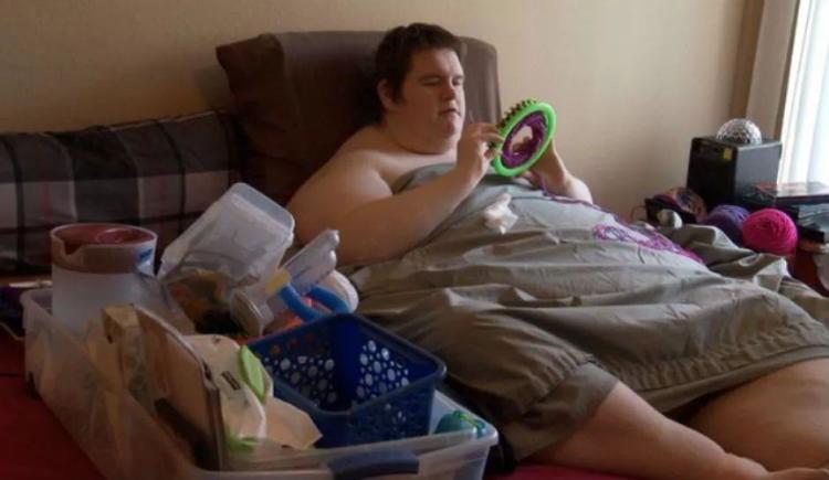 过于肥胖的他,生活非常不便,全靠母亲的帮助才能生活。