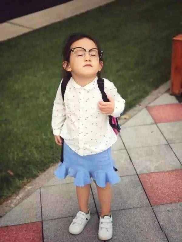 多妹头发长长了,梳着一个简单的小马尾,身穿桃心白衬衫,牛仔小裙子,小白鞋,像个活泼的小精灵,带着一副框架眼镜对着镜头卖萌,起范儿的时候丝毫不亚于那些专业小模特。网友纷纷直呼:父母颜值高,孩子的长相果不会差!