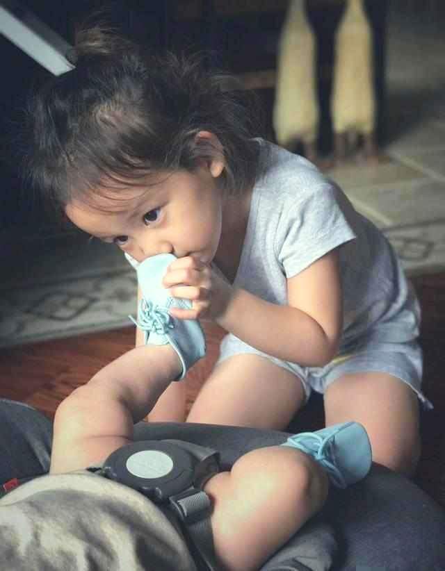 调皮的二女儿亲吻弟弟小脚丫的样子看起来好温柔,网友调侃妹妹:我必须要闻闻弟弟的小脚丫了!