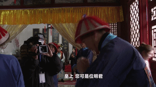 除了看景、逛景、遇偶像,还可以扮上,当当剧中角色,做做历史人物!这不,这几位“大臣“和“皇上”正“上朝”呢↓