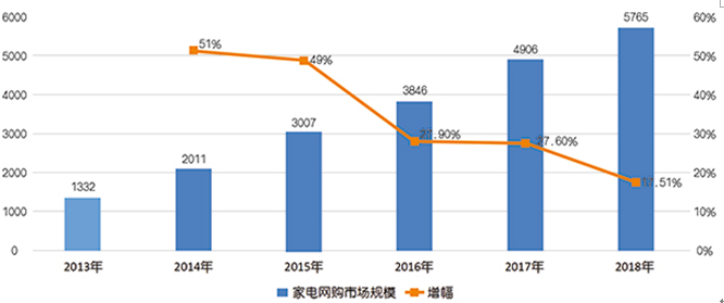 2018年,电商巨头不断探索创新,从产品到服务的各环节都进行创新,推动了家电网购市场的两位数增长和良性发展。