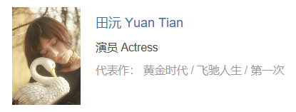 田沅,中国内地影视女演员、歌手、导演、作家。2001年,16岁的田沅便加入跳房子乐队担任主唱。2002年,田沅凭借个人首张音乐专辑《A Wish-ful Way》获得中国摇滚总评中国最具国际化魅力女歌手称号;同年,她还出版了个人首部长篇小说《斑马森林》。2005年,田沅凭借个人电影处女作《蝴蝶》获得第24届香港金像奖最佳新人奖。2008年,田沅主演了喜剧片《高兴》。2011年,她将工作重心转向导演领域,并执导了《盲糖》等十几部微电影作品。2014年,其主演的剧情片《黄金时代》在国内院线全面上映。