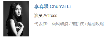 李春嫒,中国内地女演员。2009年,出演个人首部电视剧《美女不坏》进入娱乐圈。2012年,出演儿童题材电影《茶子》。2014年,担任金票根影迷嘉年华形象大使。2015年,凭借喜剧电影《煎饼侠》获得金票根影迷嘉年华潜力新人奖。2016年,出演个人首部古装剧《武神赵子龙》;6月,与张睿、高洋等联袂主演玄幻剧《墨客行》;同年,确认加盟由韩寒执导的电影《乘风破浪》。