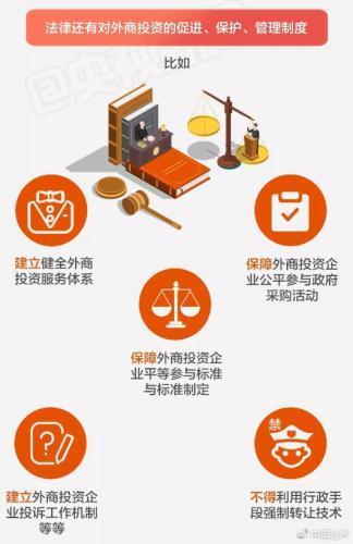 投资保护部分明确,国家保护外国投资者和外商投资企业的知识产权;行政机关及其工作人员不得利用行政手段强制转让技术;同时国家建立外商投资企业投诉工作机制。