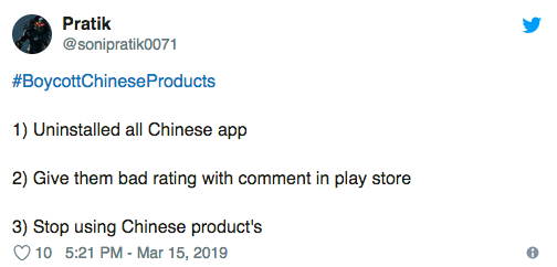 ▲ Indians are trending #BoycottChineseProducts—using Chinese smartphones (via qz.com)