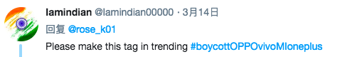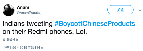 印度人拿着红米手机发推#抵制中国产品。哈哈哈!