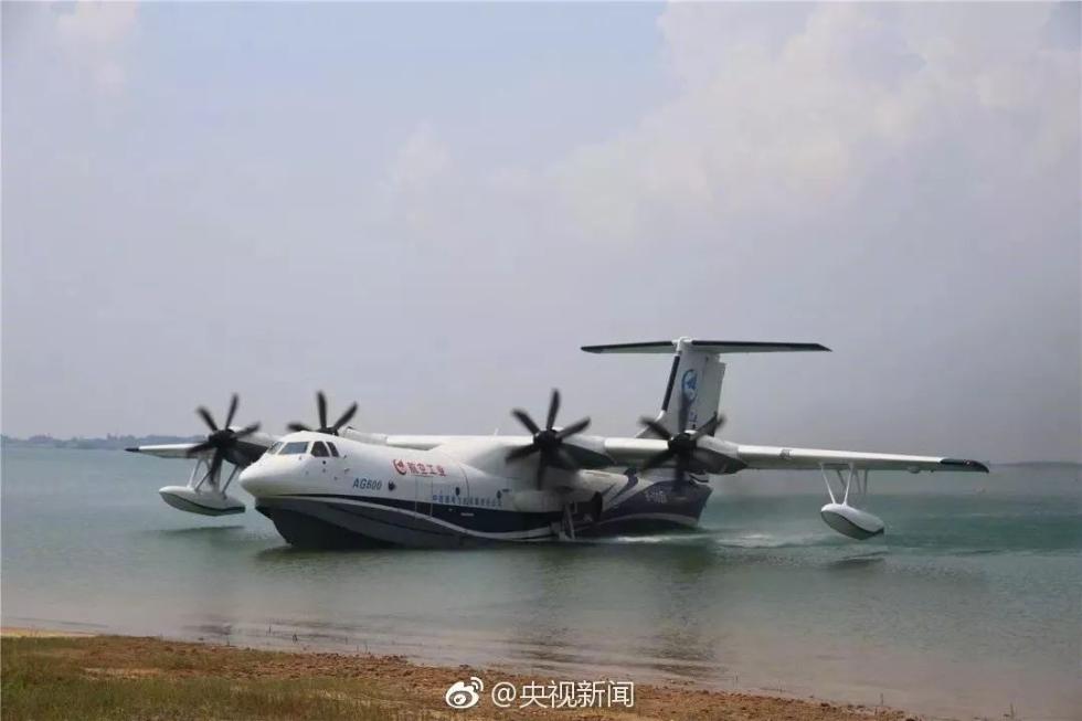 我国自主研制的世界最大的水陆两栖飞机鲲龙AG600水上首飞: