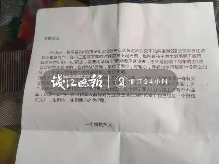 第二天,他又以匿名的方式给杭州公交热线打去了电话,告诉他们伞送到了。