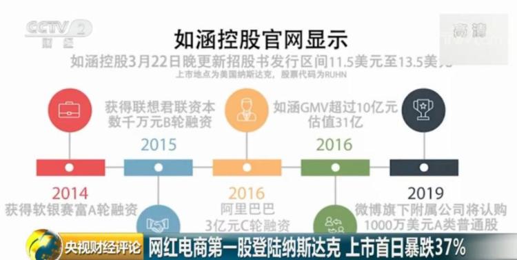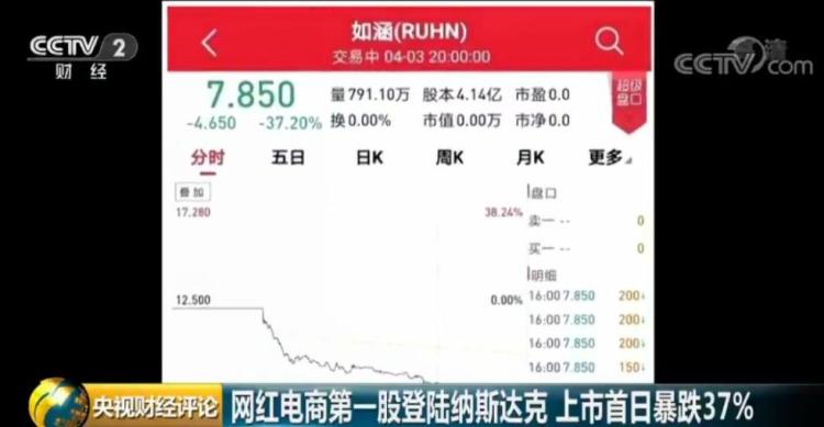 北京时间2019年4月3日晚间,国内网红电商第一股如涵(股票代码“RUHN”)在美国纳斯达克挂牌上市。被网友戏称为颜值终于变成了市值。