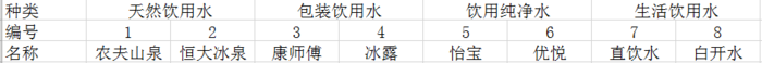 小编根据8款水的特点将它们分成了上述四个种类,并依次进行了编号。