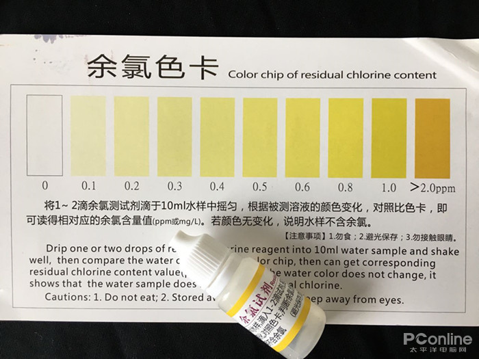 本次实验使用了PConline评测室购置的水质检测箱,实验项目分别为TDS值、pH、矿物质、余氯、主观口感五个项目。