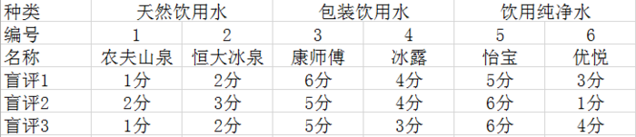 这次小编请到了两位同事对6款买来的瓶装水口感进行了盲评,包括小编自己也品尝了一下,这项测试没有任何实际意义,仅供参考。