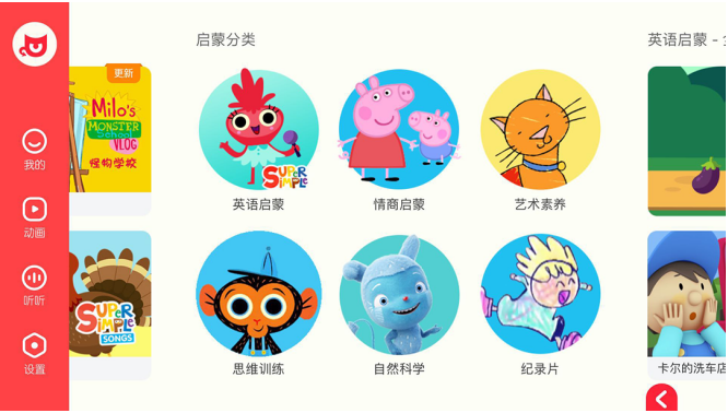 此外,平台还筛选了中国儿童喜欢且富有教育意义的动画,包括《小猪佩奇》、《汪汪队立大功》、《爱探险的朵拉》、《嗨道奇》等等。