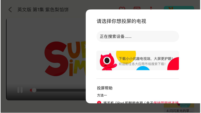 小小优趣APP除了支持手机观看,还可以在Pad、智能电视和电视盒子上观看,还支持用投屏播放,让孩子通过大屏观看,保持安全距离与正确坐姿,保护视力与颈椎健康。