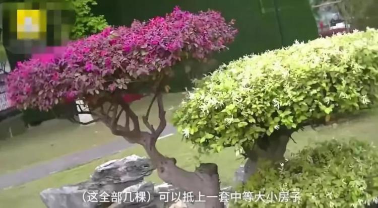 盆景爱好者张先生介绍,这是白花檵(j�)木与红花檵木两种颜色的花开在一棵树上十分罕见,百年难得一遇,就这么几棵价值抵过武汉一套中等大小的房子。有网友据此推测,这几棵树就价值百万元。