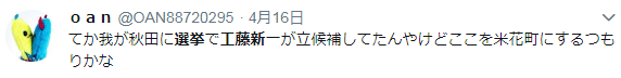 (@OAN88720295:话说工藤新一来参加我们秋田市的选举干嘛,他应该参加米花市的吧)