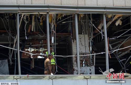 斯里兰卡多个教堂和高级酒店4月21日复活节当天发生爆炸,已造成数百人伤亡。目前尚无组织或个人宣称对爆炸案负责,斯里兰卡安全官员正展开调查,总理维克勒马辛哈谴责了系列爆炸案,召开紧急会议应对。图为警方在斯里兰卡首都科伦坡发生爆炸的酒店进行调查。