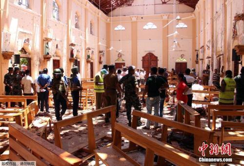 斯里兰卡多个教堂和高级酒店4月21日复活节当天发生爆炸,已造成数百人伤亡。斯里兰卡安全官员正展开调查。最新消息称,目前已确认两名嫌犯身份。图为警方和安全官员正在发生爆炸的教堂进行现场勘查。