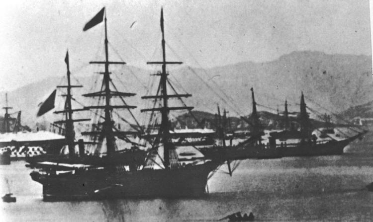 资料图片:早在1840年鸦片战争前,香港附近海域已成为大量英国鸦片船的停泊地。英国统治香港初期,英商很少从事正当的经贸活动,主要进行罪恶的鸦片贸易,香港岛成为远东最大的鸦片走私总站。这是停泊在香港的英国鸦片船。新华社发