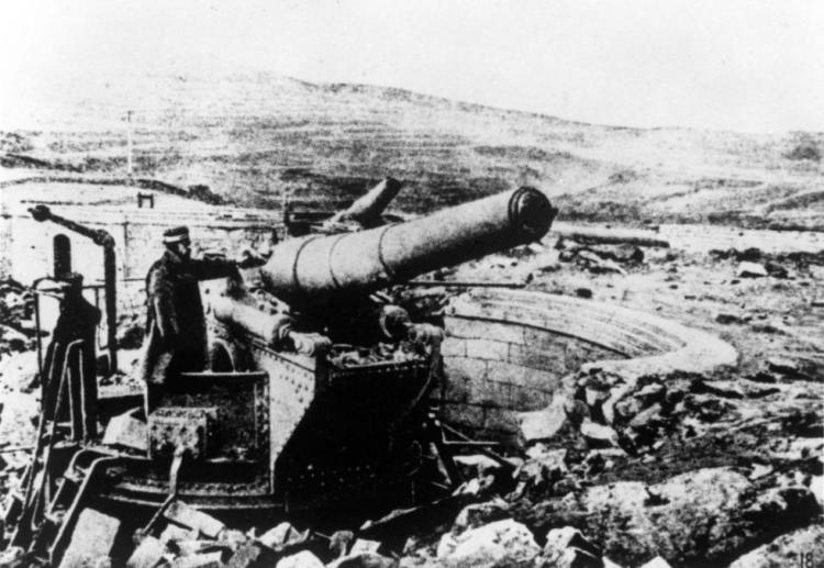 资料图片:1895年1月,日军进攻威海卫,守卫炮台的清军进行了英勇的抵抗,但终因孤军无援,守将逃走,炮台陷落。图为被日军侵占的威海卫炮台。新华社 稿