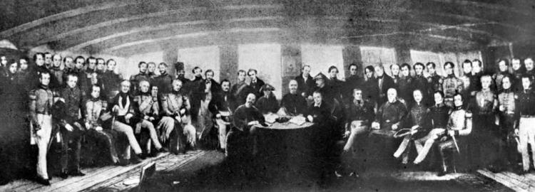 资料图片:1842年8月29日,清朝政府与英国在南京签订了结束鸦片战争的丧权辱国的中英《南京条约》。条约共13款,主要内容有割让香港、向英国赔款2100万银元等。从此,中国沦为半殖民地半封建国家。后人称这一天为国耻日。这是中英签订《南京条约》的图画。 新华社发