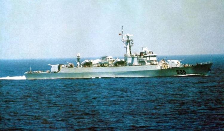 1986年12月14日,中国第一艘自行设计、建造,国内先进的新型导弹护卫舰开始服役。这艘护卫舰是上海沪东造船厂设计建造的。新华社发(资料照片)
