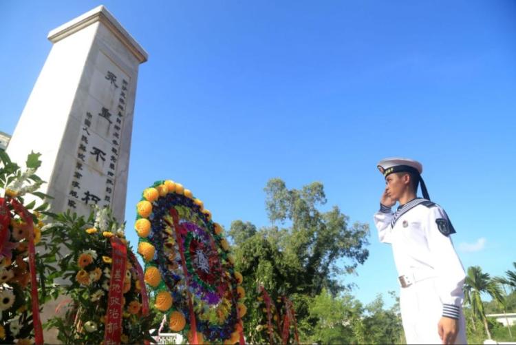 2014年9月30日,在海南三亚市红沙烈士纪念馆,海军驻三亚某部战士莫永康向烈士纪念碑敬礼。当日是我国首个烈士纪念日,多地举行缅怀先烈、学习烈士英雄事迹活动。新华社发(严陈 摄)